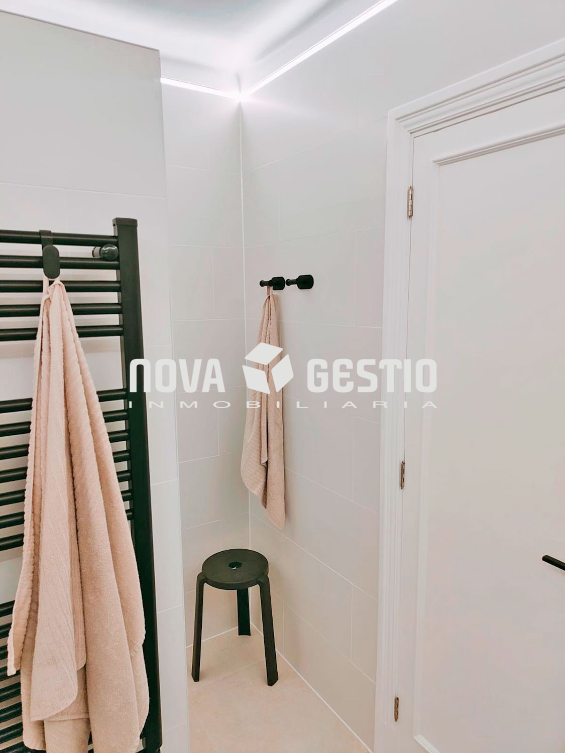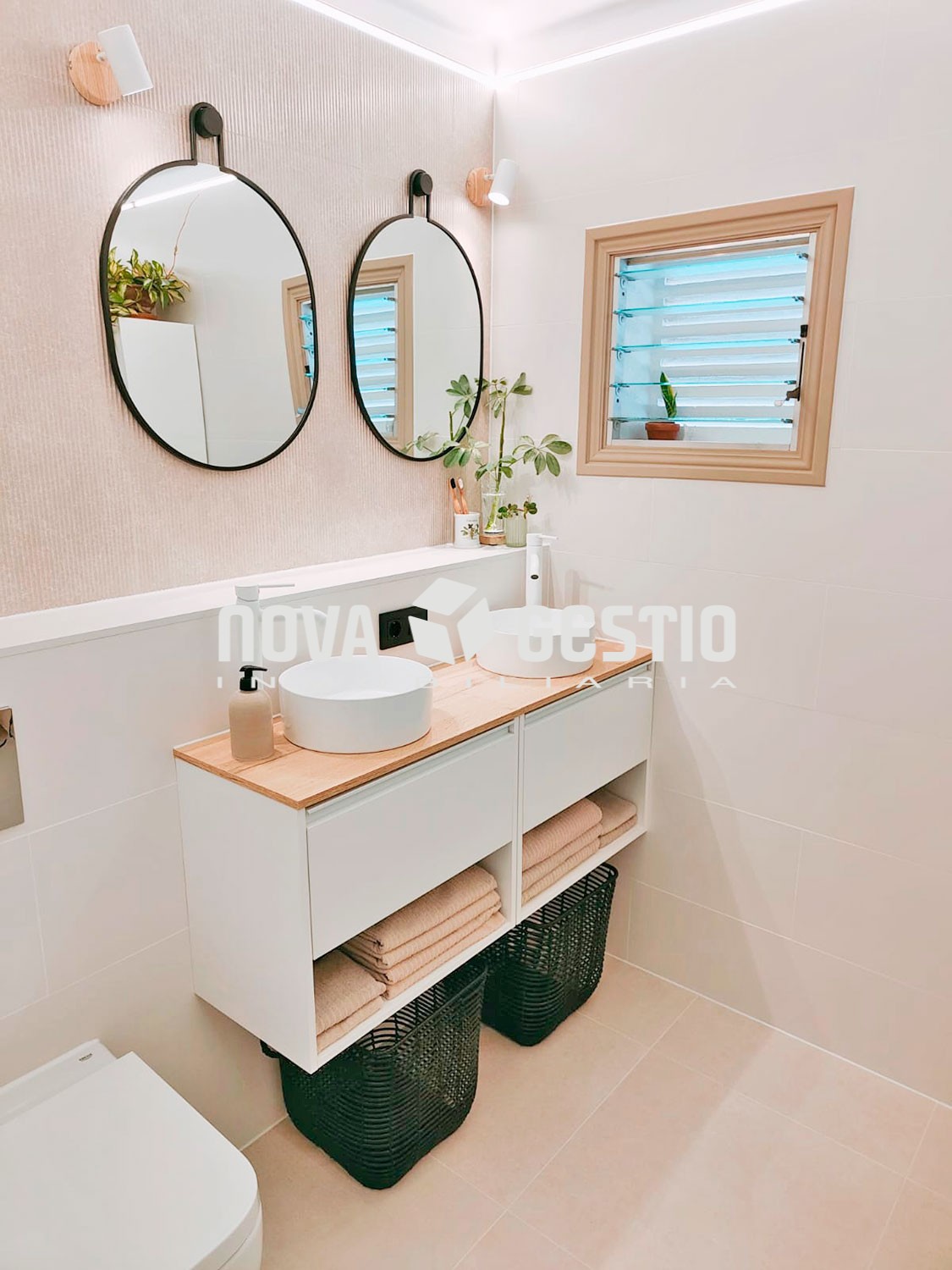 Beautiful apartment for sale in Cala Millor, 100m from the beach, with 95 m2 built plus 18 m2 of terrace and balcony. It is distributed in 3 double bedrooms with fitted wardrobes, 2 bathrooms, one of them en suite in one of the double bedrooms and 1 guest bathroom with shower. It also has a living-dining room with fireplace and A/C, open and equipped kitchen next to the laundry room. It is a 1st floor with only 7 neighbors in the building, guaranteeing a quiet environment, well located and close to the sea. Both the interior and exterior carpentry are wooden. The furniture and wall decorations are included in the sale price. It is located in a well-connected area with all services nearby.