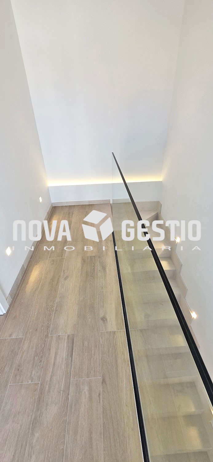 The house has underfloor heating and air conditioning with heat pump in all rooms. It occupies the entire first floor of the building and is distributed in three double bedrooms and one single bedroom; four full bathrooms, all equipped with showers; a spacious and bright living room and a kitchen-dining room with an elegant central island, fully equipped with high-end appliances. The house is equipped with home automation system.