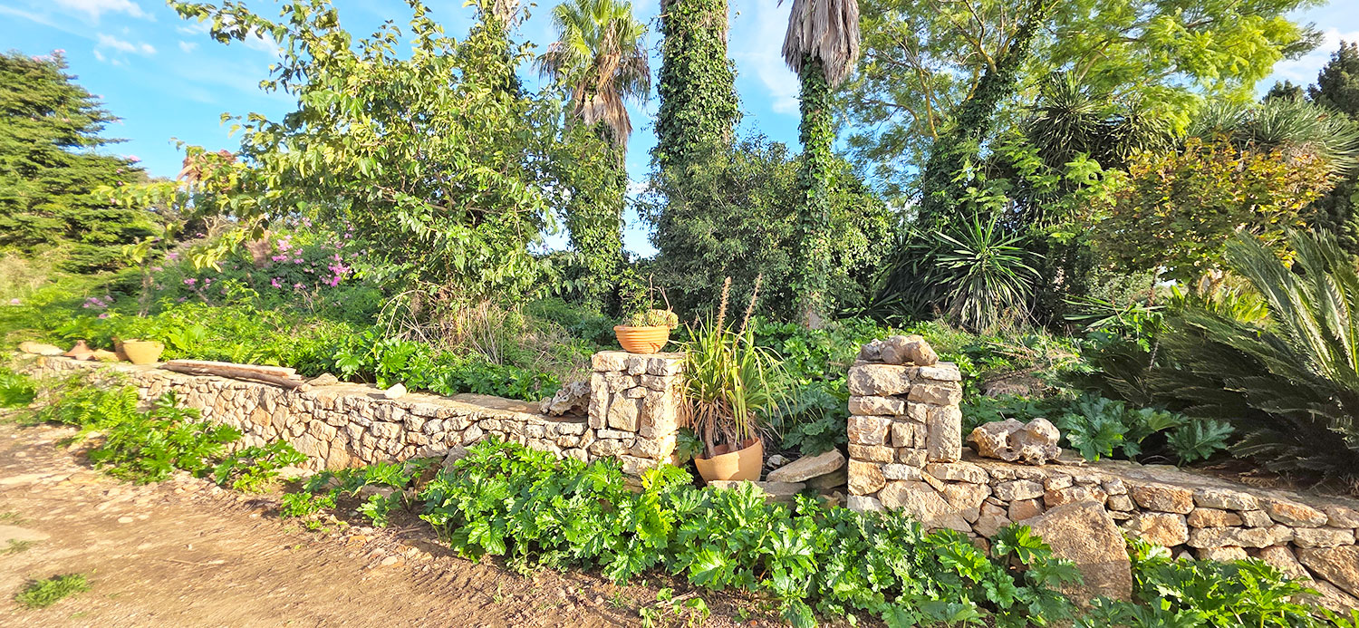 Cercado de pared seca por varios costado y con vegetación autóctona. La casa se podría hacer habitable con un presupuesto no muy alto y luego se podría ampliar.