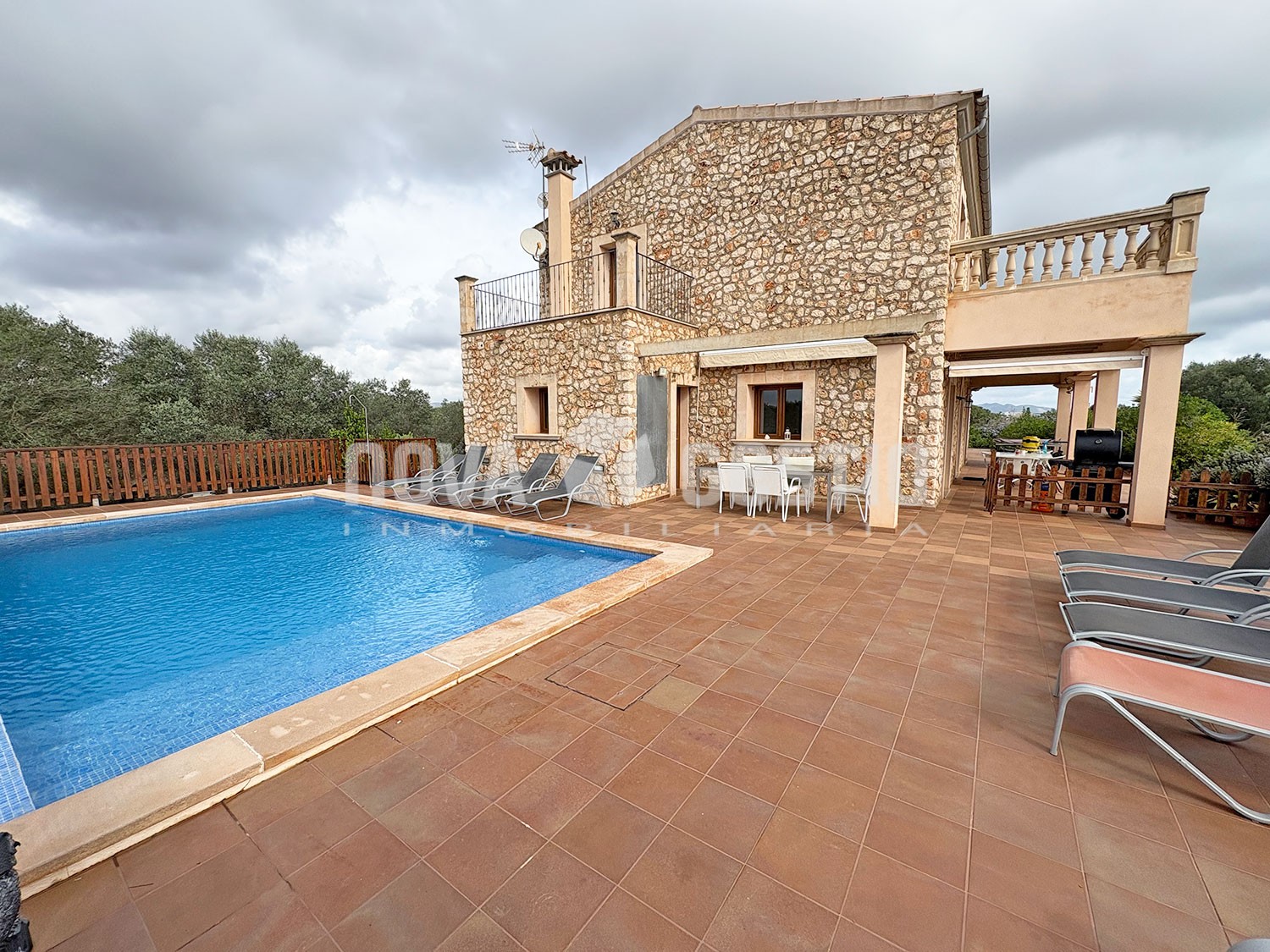 Encantadora finca rústica en alquiler cerca de Manacor, con piscina, gran terraza y barbacoa.